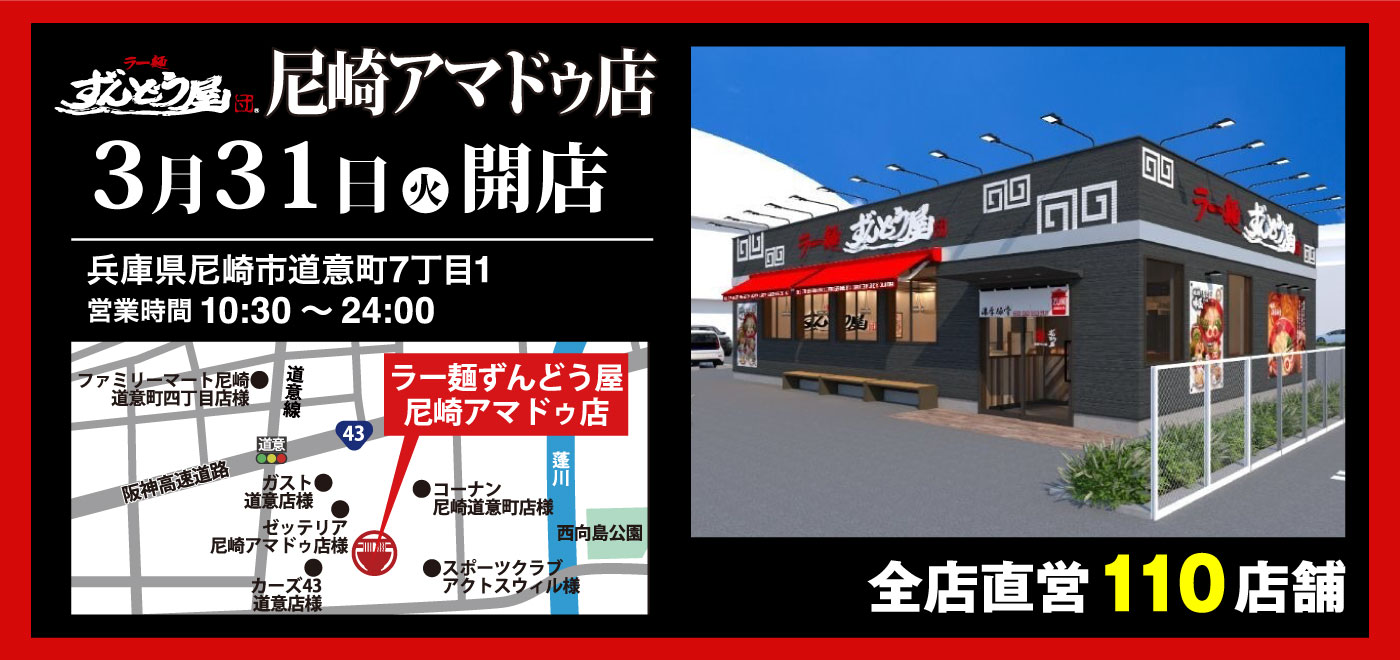 新店舗「ラー麺ずんどう屋尼崎アマドゥ店」3月31日オープン