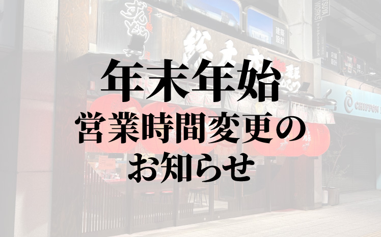 年末年始の営業時間変更およびセットメニュー販売休止について